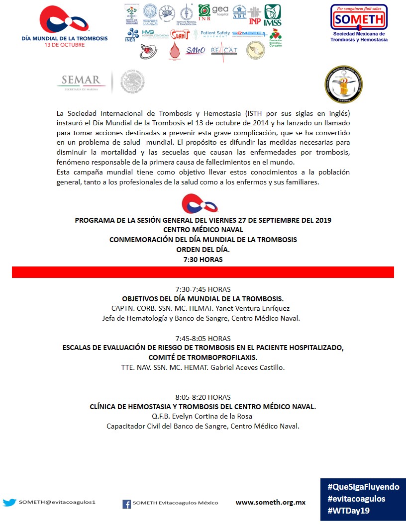 Día Mundial de la TrombosisMás Actividades DMT 19Conmemoración del DMT Centro Médico Naval someth7 años desde que se envió1 mes desde que se envió01 minutos Leer más