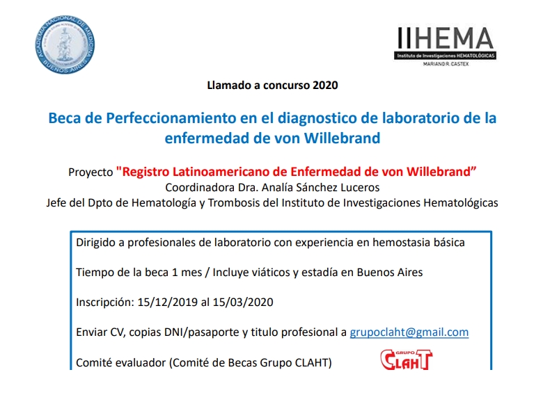 Reglamento Becas 2019 Beca de Perfeccionamiento en el diagnóstico de laboratorio de la enfermedad de von Willebrand. 1) profesionales de laboratorio con menos de 40