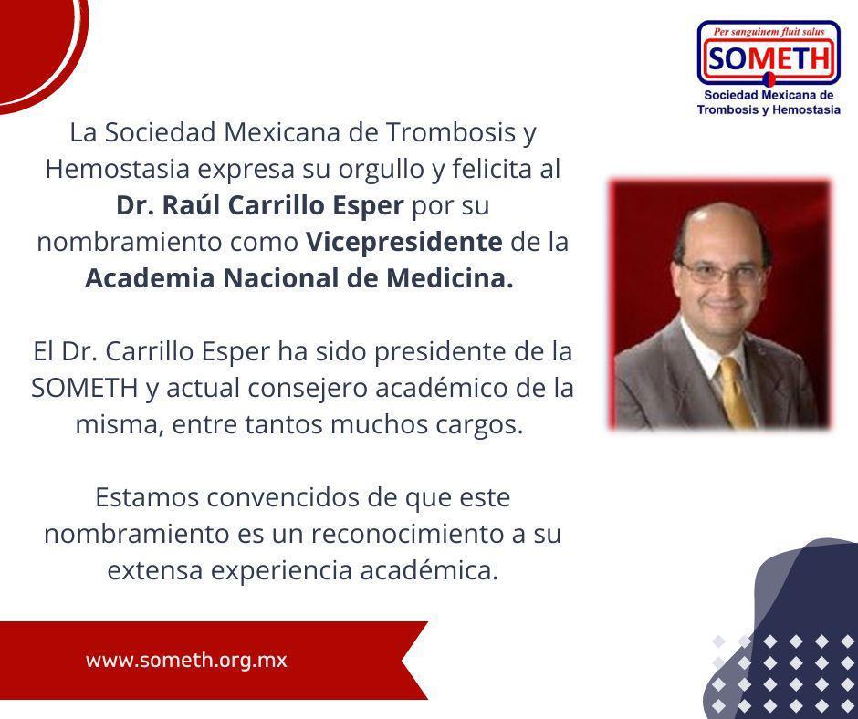 NoticiasFelicitaciones al Dr. Carrillo Esper por su nombramiento como Vicepresidente de la Academia Nacional de Medicina someth3 años desde que se envió1 mes desde que se envió01 minutos Navegación de entradasAnterior: Seminario FMH-CLAHT: ¿Por qué no pensamos en trastornos de la coagulación en mujeres y niñas?Siguiente: Feliz Día de la Química y del Químico – 1 de diciembre 2023