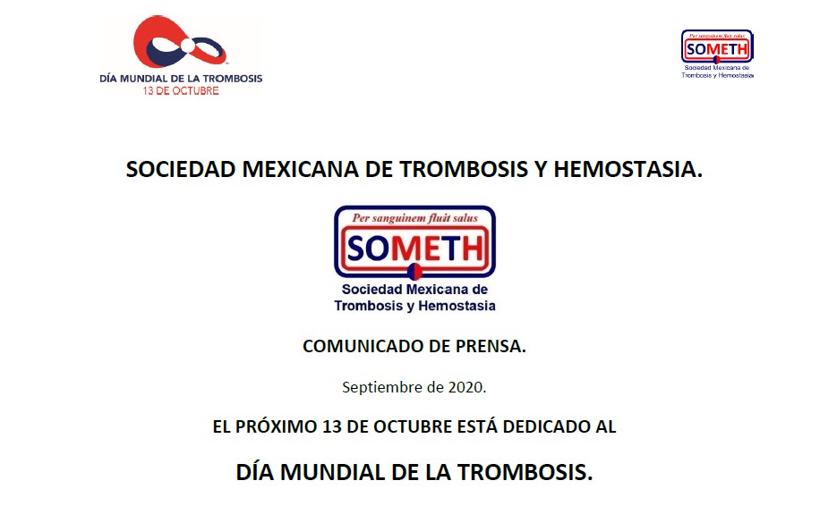 Día Mundial de la Trombosis Comunicado de Prensa SOMETH por el Día Mundial de la Trombosis Leer más » 27 de octubre de 2020