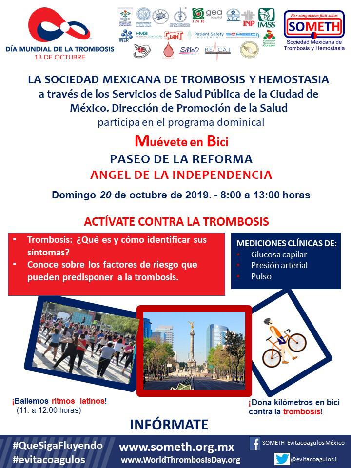 Actividades SOMETH DMT 19Muévete en Bici, Activate contra la Trombosis someth7 años desde que se envió1 mes desde que se envió01 minutos Navegación de entradasAnterior: Primer Caminata de Médicos Residentes contra la TrombosisSiguiente: Sesión Solemne «Dìa Mundial de la Trombosis» Academia Nacional de Medicina de México